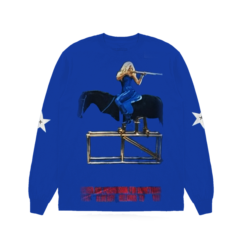 Saddle up in the boldest colors of the Act II era with the Beyoncé Cowboy Carter Blue Rodeo Signature Longsleeve. This striking piece captures the high-energy, "American Flag" aesthetic of the 2025-2026 World Tour, blending a vibrant royal blue with the rugged, soulful storytelling of the Great American Rodeo.